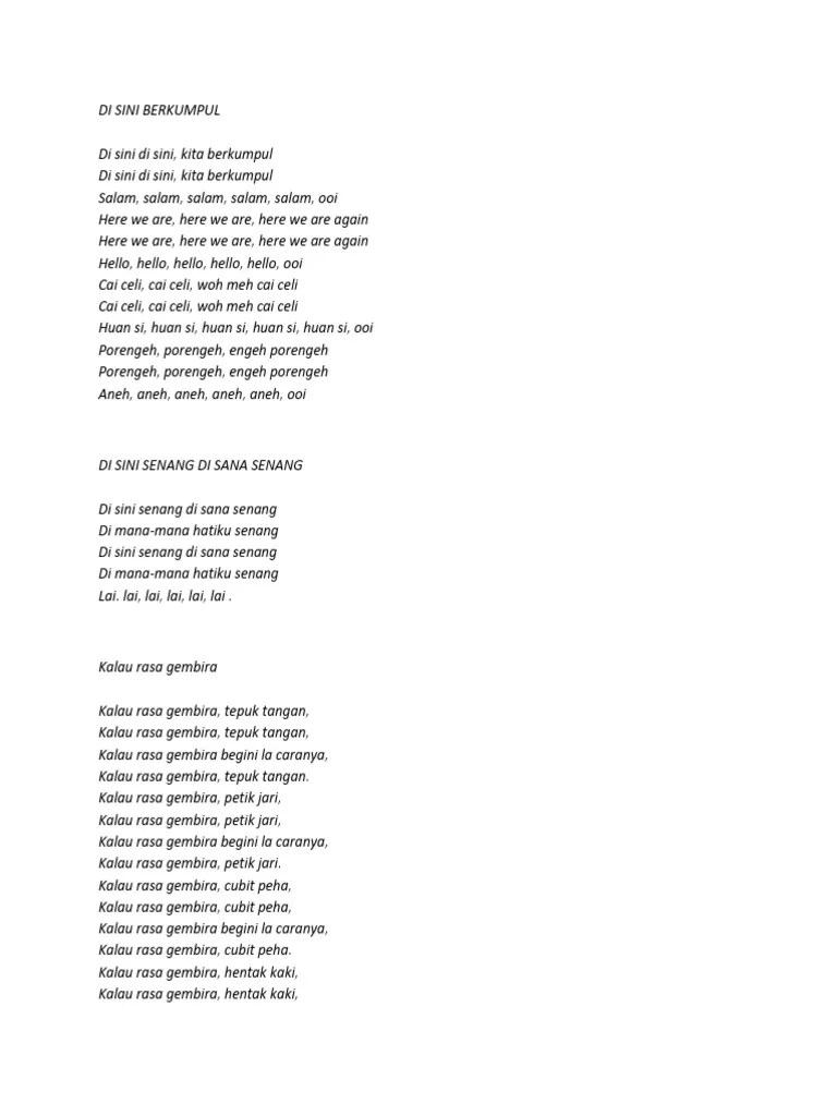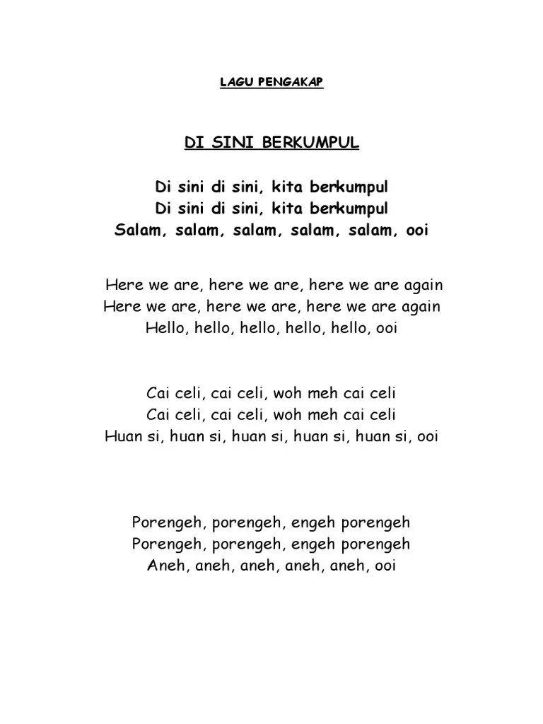'di sini senang di sana senang' merupakan salah satu lagu anak yang cukup populer. Lagu rasmi persekutuan pengakap malaysia. Text of lirik lagu pengakap. Ag suryaputra tempat kita bernyanyi.